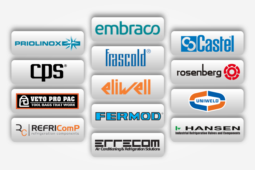 Embraco Brazil (ברזיל), Fermod (צרפת), Embraco Europe – Aspera (איטליה) , Castel (איטליה), Novovent (ספרד), Calorflex (איטליה), Frascold (איטליה), Black Cobra (ארה"ב) , Ashcroft (ארה"ב), Shyuan Ya Enterprise – Liang Heng Elec Mach (טאיוואן), Refricomp Gökçeler Soğutma (תורכיה), Hoppy Industrial (טאיוואן) , FMI(איטליה), Euro Motors Italy (איטליה), Priolinox (איטליה), Bitzer (גרמניה), WTT/GEA (גרמניה), Honeywell (גרמניה), Flica (גרמניה), SFC (גרמניה), Fasecc (איטליה), Karyer (תורכיה), Kulthorn Kirby (תאילנד), Hoppy (טיוואן), Ranco (איטליה), Luve (איטליה), Kirby Group (תאילנד), LR Leitenberger (גרמניה), CPS (ארה"ב), A.O.Smith (ארה"ב), Frigomec (איטליה), (ארה"ב), Thermodisc (ארה"ב), General Filter (איטליה) , RefComp (איטליה), ThermoKey (איטליה),Eliwell (איטליה), Hansen (ארה"ב), Roen EST (איטליה), Errecom (איטליה), 9 Life (טאיוואן), Yaskawa (יפן), Cold-Flex (תורכיה), Faran (קוריאה), Sopormetal (פורטוגל), Sumner (ארה"ב), Hidria (סלובניה), VIP Air Empowement (איטליה), Pietro Galliani (איטליה), Veto Pro Pac (ארה"ב), Gentec (ארה"ב), Dunan (סין) ורבים אחרים.